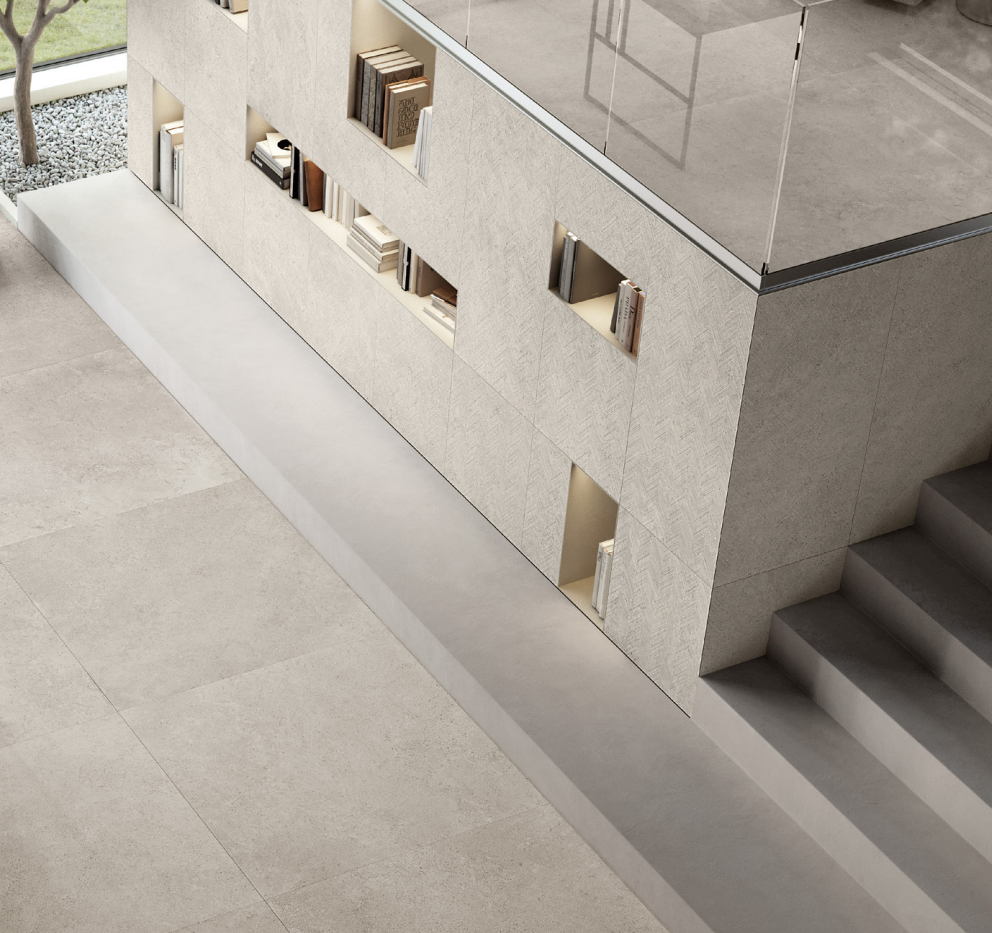 Chaque carreau est taillé avec précision sur son arête à un angle calibré. Lorsque deux pièces se rejoignent, elles forment un angle net de 90°. Avec du carrelage grand format, l’effet est encore plus saisissant - l’angle semble taillé dans un seul bloc massif.
