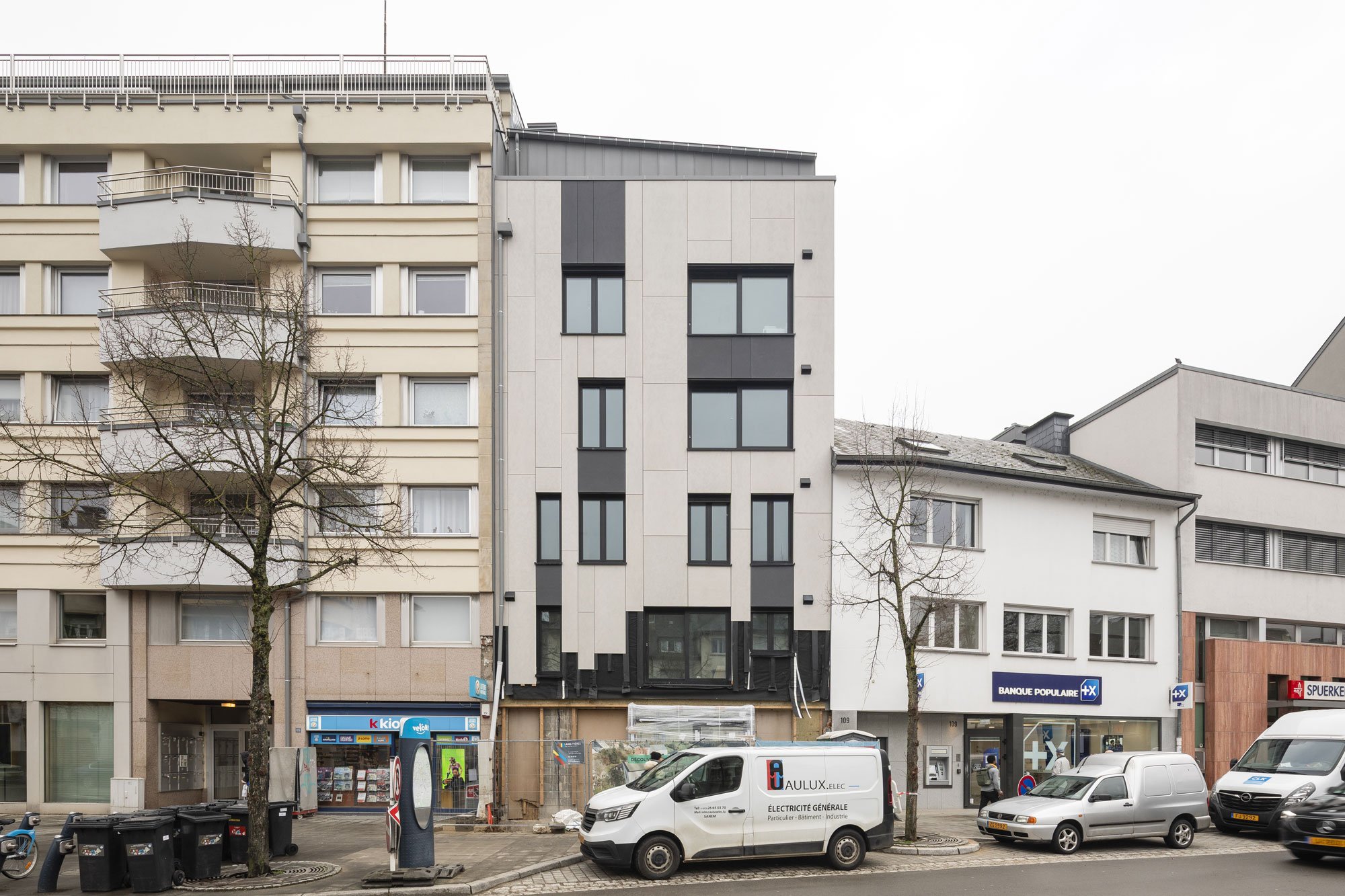 Polybe est une résidence passive (AAA) composée de six unités et d’un espace commercial, située au 107, rue de Bonnevoie à Luxembourg. Construite par la Team CLK et développée par Brouwers, elle s’inscrit dans un quartier à la fois résidentiel et dynamique. Bonnevoie est aujourd’hui considéré comme l’un des quartiers les plus tendance de Luxembourg, particulièrement apprécié pour son atmosphère vivante et son charme residentiel.