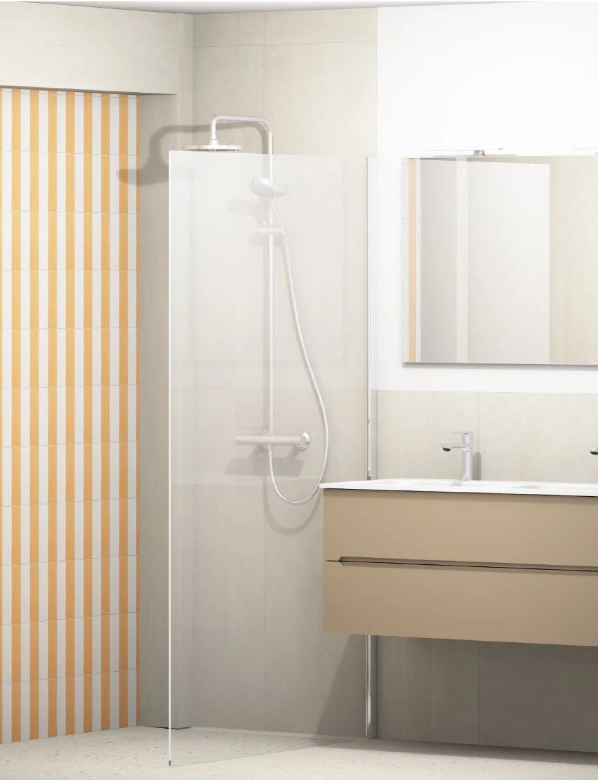 Les choix sanitaires ont été réalisés avec une attention particulière portée à la durabilité et à l’efficacité. Le mitigeur Hansgrohe, récompensé par le Red Dot Design Award en 2022, limite le débit à 5 l/min, réduisant ainsi la consommation d’eau et d’énergie. Il intègre une technologie d’aération du jet pour un écoulement doux, sans éclaboussures. La colonne de douche avec mitigeur thermostatique est équipée d’un curseur Push coulissant, facilement réglable d’une seule main. Grâce à la technologie anti-calcaire, les dépôts s’éliminent simplement en frottant les picots en silicone.